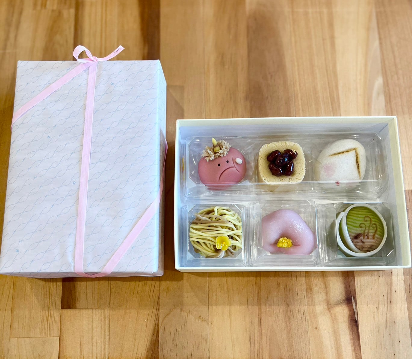 今回は節分の図案3種類に季節の上生菓子を組み合わせた6個入りをご用意いたしました。